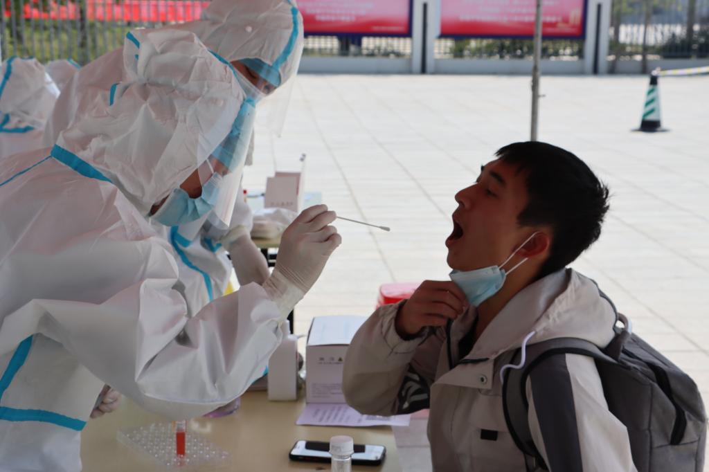返校当天,根据学生来源地区设置不同返校通道,在工作人员和学生志愿者引导下,有序排队,依次通过行李消毒、查看健康码、行程卡、返校申请的审核结果、体温检测、人脸识别等流程。现场还设置了临时观察区、志愿者服务站和核酸检测点,对跨省返校和重点关注地区的返校学生进行“三天两检”,确保核酸结果正常后方可入校。各职能部门、各学院辅导员、学生志愿者、医护人员通力合作,全方位全流程地守护返校学生安全和健康。