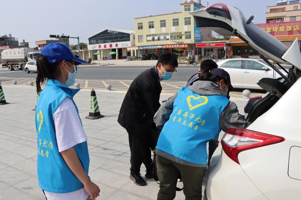 志愿者帮助返校生搬运行李