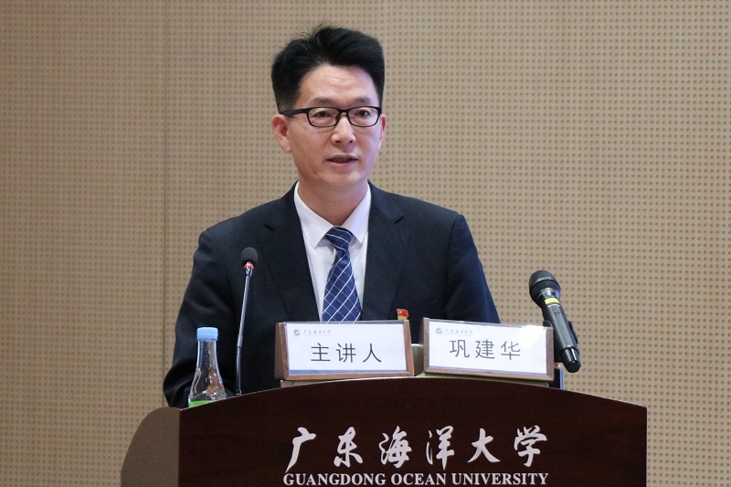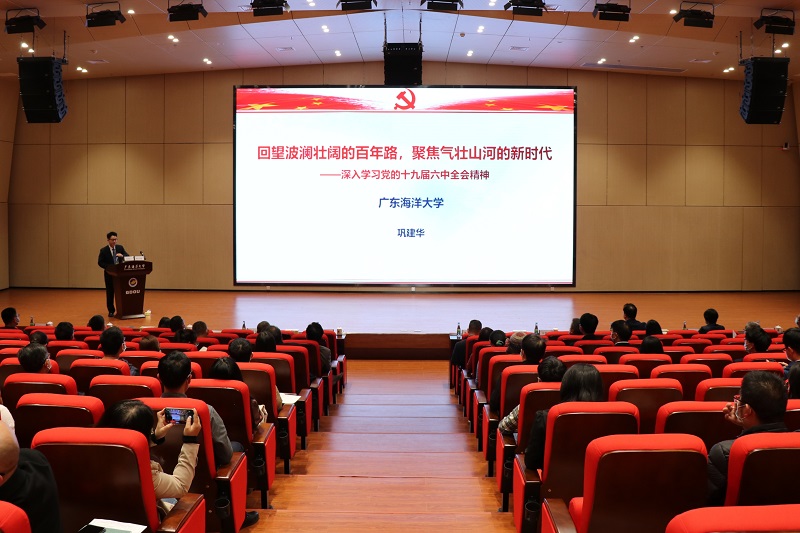 1月5日下午,阳江校区党委在海纳楼113报告厅举行学习贯彻党的十九届六中全会精神宣讲报告会。校党委书记曹俊明,校党委办主任、机关党委书记王明对,阳江校区党委副书记、管委会常务副主任周昌仕以及校区全体教职工、学生党员代表共100多人参加。本次报告会由学校党委理论宣讲团成员、学校马克思主义学院教授巩建华主讲,阳江校区党委委员、管委会副主任陈永强主持。