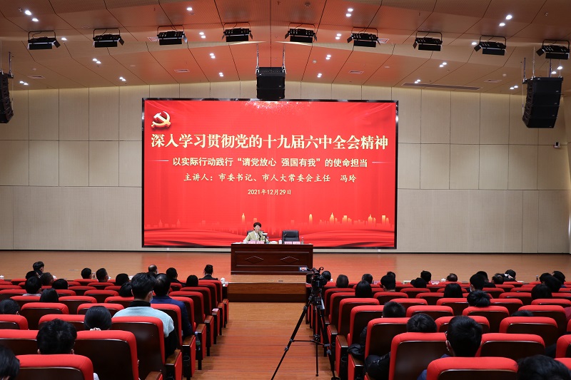 12月29日,阳江市委书记、市人大常委会主任冯玲到kaiyun阳江校区,以“深入学习贯彻党的十九届六中全会精神,以实际行动践行‘请党放心 强国有我’的使命担当”为主题,为校区师生讲授思想政治理论课,强调要用习近平新时代中国特色社会主义思想铸魂育人,坚持社会主义办学方向,落实立德树人的根本任务,寄望广大学生以实际行动践行使命担当,用青春和汗水谱写人生精彩华章。校长潘新祥主持。校党委常委、副校长、阳江校区党委书记、管委会主任宁凌,阳江市委常委、宣传部部长杨骁婷,阳江市有关单位领导、阳江校区领导以及校区各部门、单位负责同志,老师、学生代表,共150多人参加活动。
