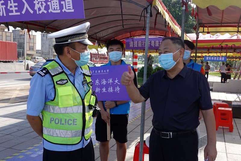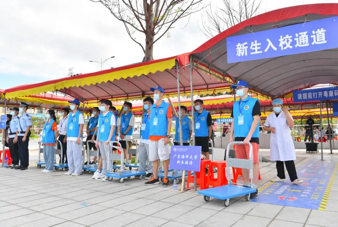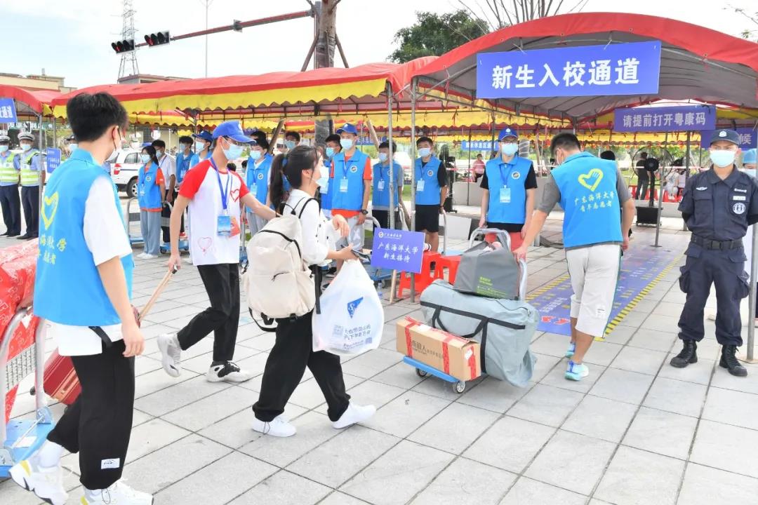 在阳江公安、医务、交通系统人员的齐心助力下,“圆梦海大”迎新严守防疫要求,车辆即停即走,家长听从指挥,做到“错峰送学”,现场井然有序。