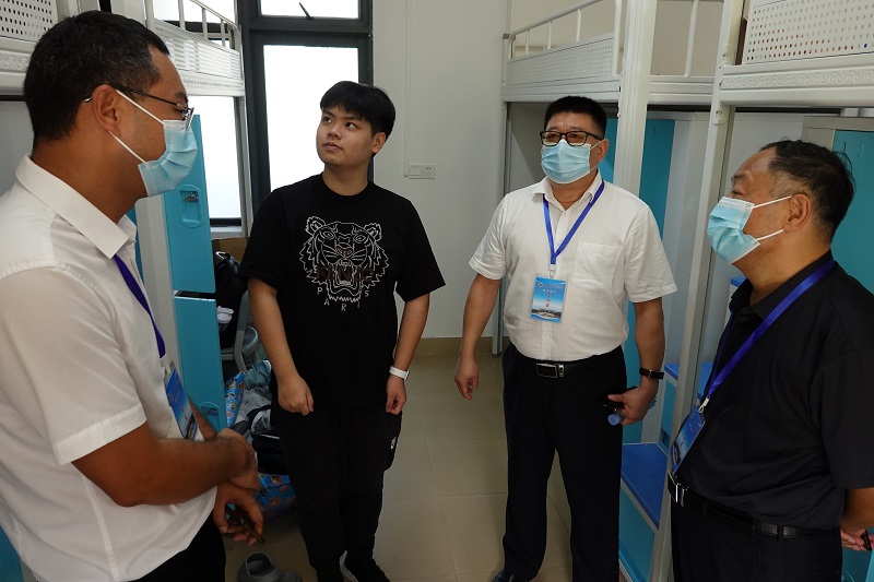 校党委常委、副校长谭北平(右二)及校区领导在学生宿舍