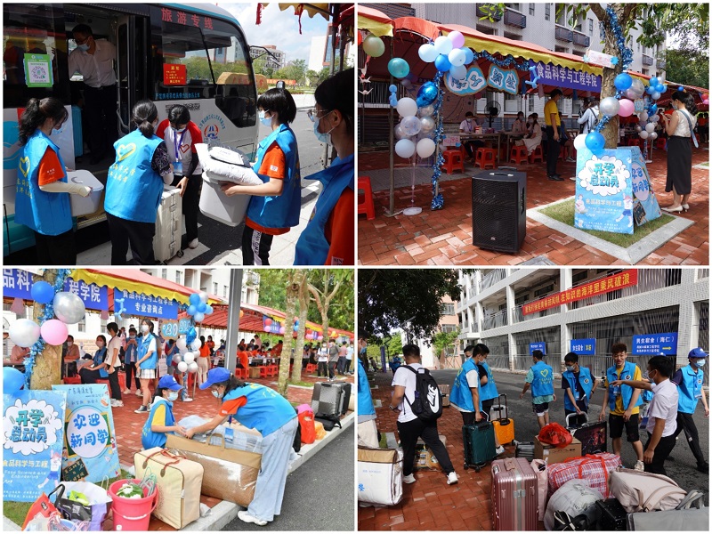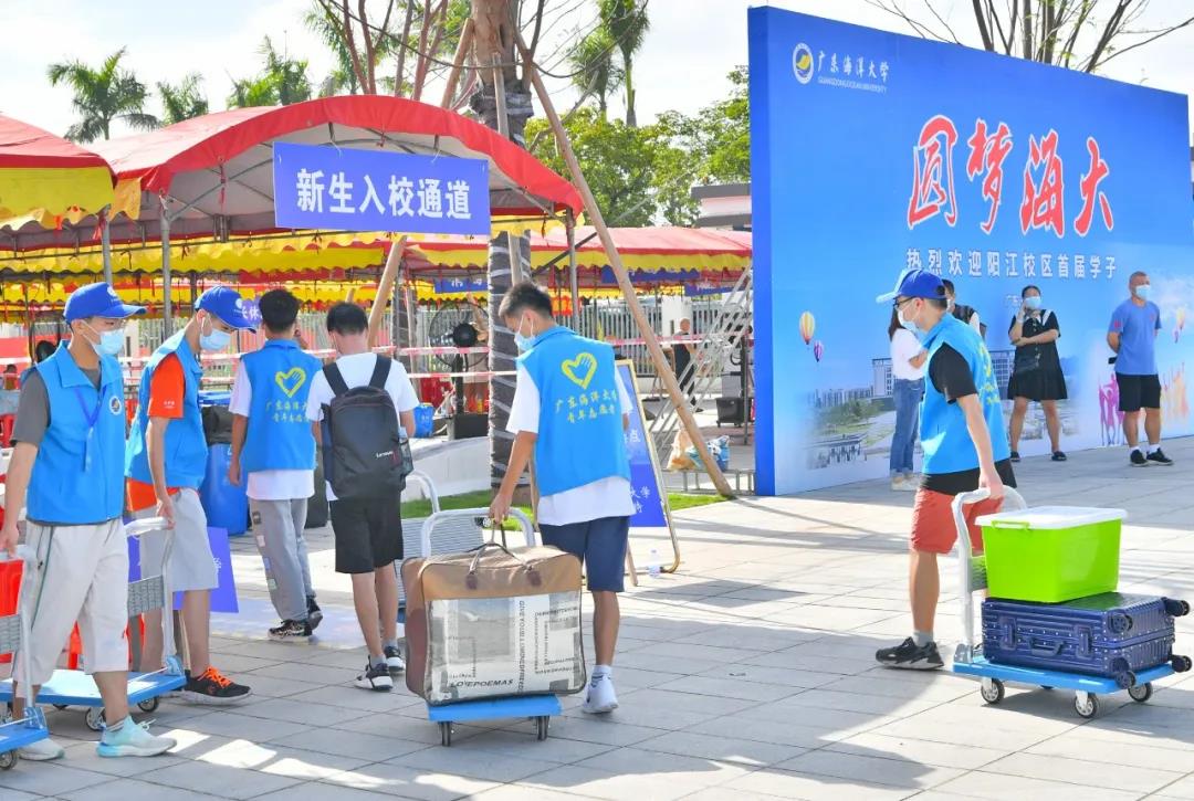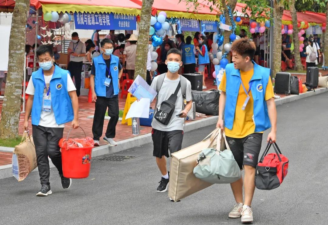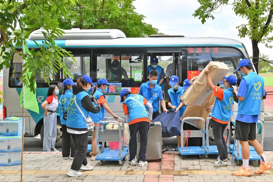 为方便新生,校方协调安排了两辆大巴车到阳江高铁站出口接送学生。校内也安排了四辆公车,新生一进校门口就将其送至学生公寓楼下的各学院报到登记点。