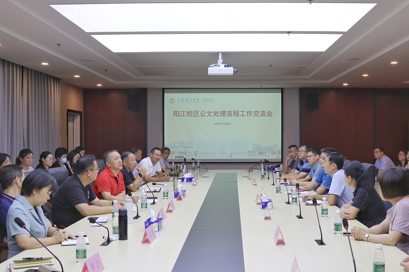 2021年7月26日下午,校长办公室主任李育芳一行前往阳江校区指导公文处理及OA系统工作,并与阳江校区召开公文处理工作交流会。副校长宁凌,人事处处长、阳江校区建设办常务副主任洪鹏志,阳江校区各部门、学院负责人和相关工作人员参加会议;发展规划处副处长、阳江校区建设办副主任毛琪主持会议。