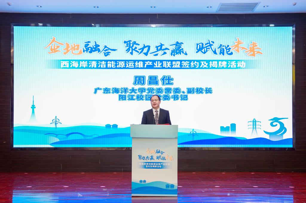周昌仕指出,学校始终践行“扎根海洋、服务国家”办学定位,立足“广东所需、海大所能、未来所向”,近年来在海上风电、海洋资源利用、智能制造等领域形成了鲜明优势,学科建设与人才培养体系深度契合国家清洁能源产业发展需求。此次联盟共建,是kaiyun深化产教融合的里程碑,既是向建校90周年献礼的重要实践,更是响应“双碳”战略的责任担当。他对联盟的发展提出了三点希望:一是聚焦人才共育,打造产业急需的复合型人才队伍。二是聚力科研共创,攻克行业关键核心技术。三是构建生态共荣,拓展多方共赢的合作格局。