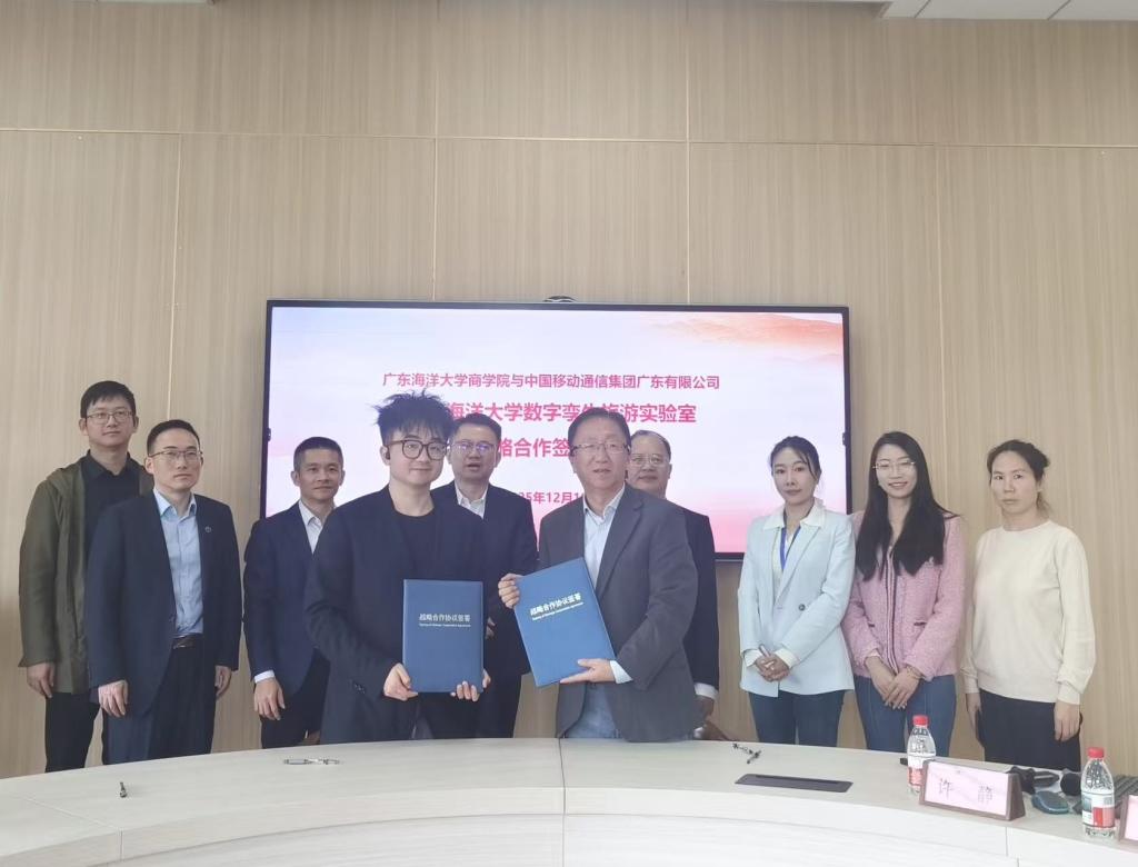12月19日,kaiyun官方网站入口移动数字孪生旅游实验室战略合作签约仪式在阳江校区济航楼203室举行。学校党委常委、副校长周昌仕,商学院院长李力、副院长张欢、移动数字孪生旅游实验室负责人白卫静、问途数字营销实验室负责人王佳和中国移动集团广东有限公司行业首席专家张峻恺、阳江分公司总经理周宁、副总经理许志海、战略客户中心副总经理梁东、战略客户中心农商文旅事业部总监等,合作双方代表参加了本次签约活动。