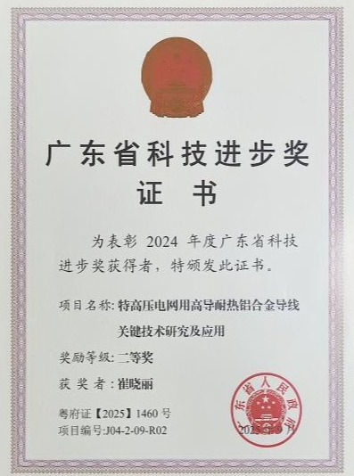 日前,广东省人民政府公布了2024年度广东省科学技术奖获奖名单。阳江校区材料科学与工程学院铁镝教授主持的《特高压电网用高导耐热铝合金导线关键技术研究及应用》项目荣获广东省科技进步奖二等奖。