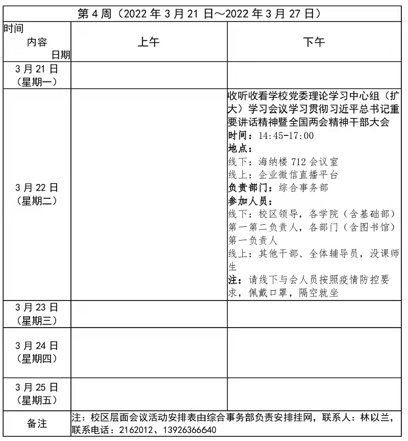 2021~2022学年第二学期第4周会议活动安排表