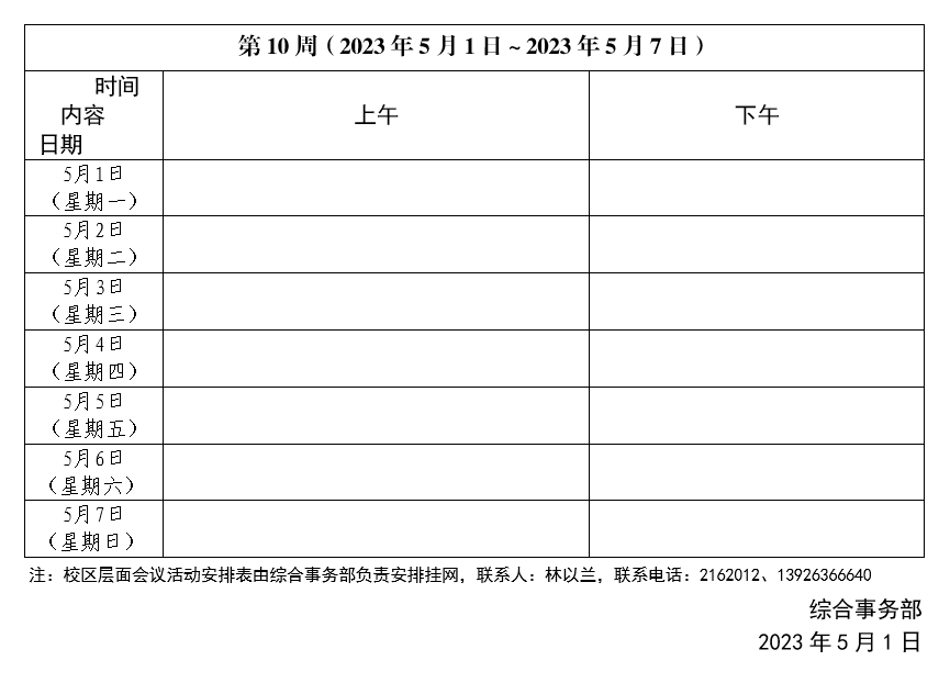 2022~2023学年第二学期第10周会议活动安排表