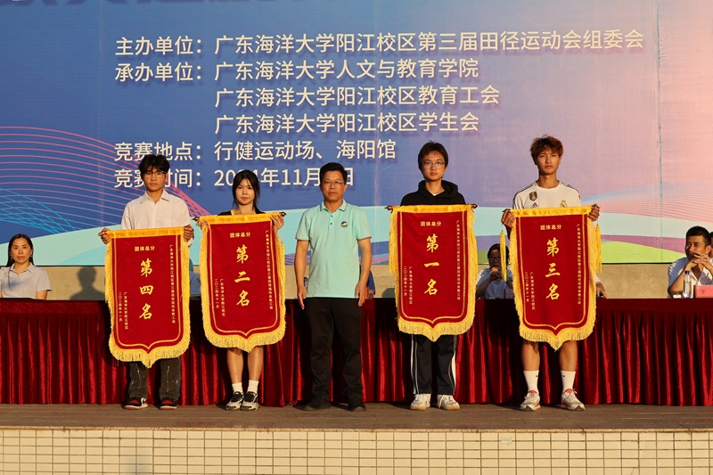 人文与教育学院、机械与能源工程学院、计算机科学与工程学院、材料科学与工程学院分别获得教工组团体总分第一、二、三、四名。商学院、食品科学与工程学院、计算机科学与工程学院分别获得学生组团体总分第一、二、三名。机械与能源工程学院学生组团体获得“体育道德风尚奖”,材料科学与工程学院学生组团体获得“优秀组织奖”。丁永成、人文与教育学院院长张新美为获奖代表队颁奖。