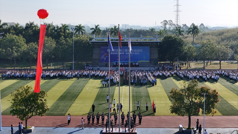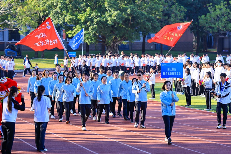 学校党委常委、副校长,阳江校区党委书记、管理办公室主任、第三届田径运动会组委会主任周昌仕出席运动会开幕式并致辞。校区党委副书记、组委会副主任丁永成主持开幕式。在全体师生的共同见证下,国旗队、校旗队、红旗队、裁判员、运动员们身着整齐的队服,精神抖擞地步入会场。伴随着激昂的进行曲,各方阵依次喊着响亮的口号通过主席台,展现了各自的独特风采。